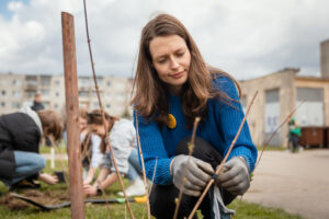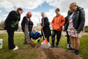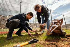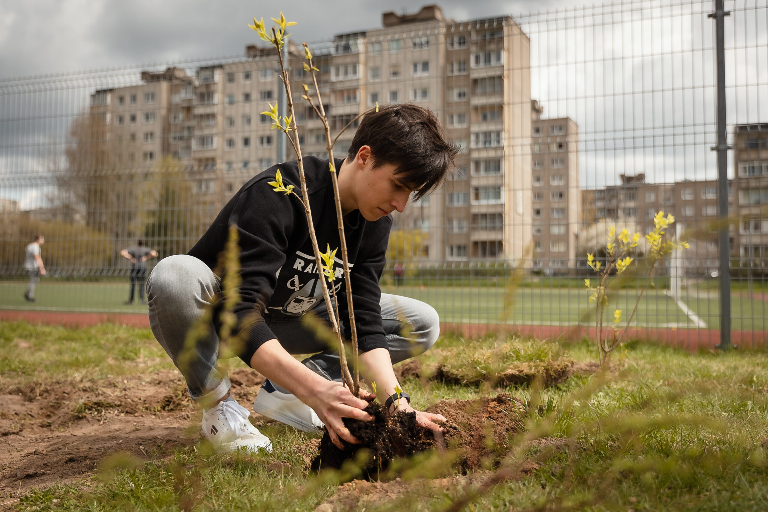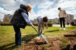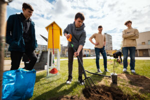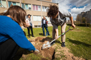 Šią savaitę „Nenutrink medžio“ iniciatyva darbus pradėjo Kaune. Kartu su VŠĮ „Kultūros dirbtuvė“ bei Jono Basanavičiaus gimnazija Šilainiuose sodinome nedidelį parkelį šalia „Versmės“ skulptūros.