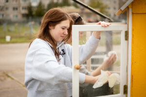 Parkelį taip pat jau puošia mokslių sukurtas modernus suoliukas ir vieša bibliotekėlė. Ateityje erdvę planuojama papuošti ir gėlynais.