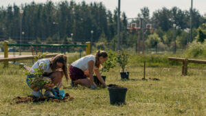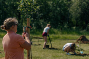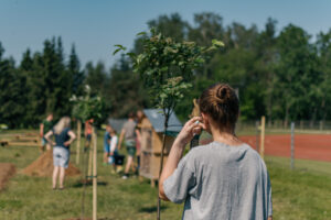 Šią vasarą, kartu su Balsiu bendruomene, kūrėme pojūčių skverą Balsiuose. Skverelio idėja yra suaktyvinti žmogaus pagrindinius pojūčius – regėjimą, klausą, uoslę, lytėjimą ir skonį. Nedideliame plote bendruomenė įkurdino vabzdžių viešbutį, sukūrė basų kojų taką, žaidimų erdves. O sodinimo metu skverą papildė skirtingų formų, faktūrų, kvapų medžiai ir krūmai. Ateityje čia planuojama įkurti prieskonių lysves – viskas tam, kad žmogus pabūtų tirštoje pojūčių erdvėje!